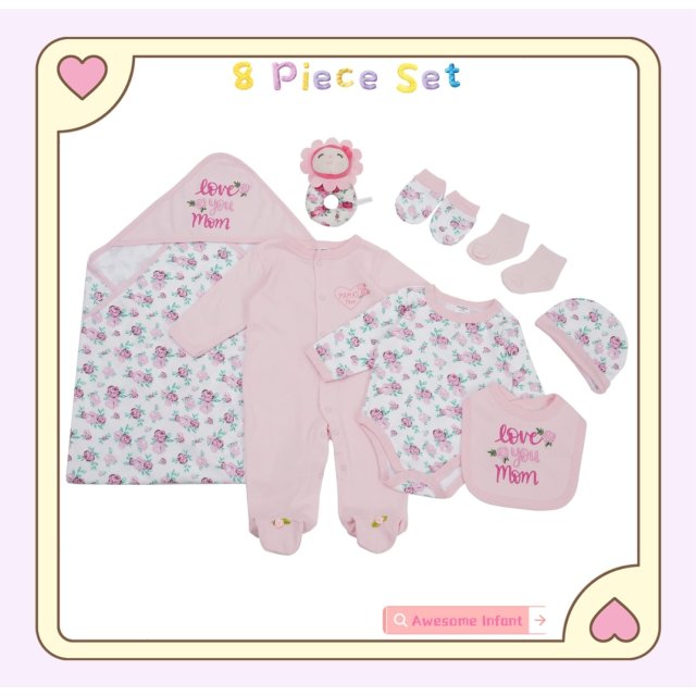 粉色花朵7件套嬰兒套裝
