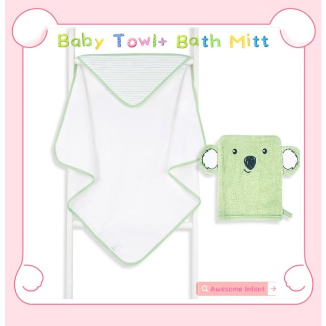 果綠考拉嬰兒毛巾+洗澡手套