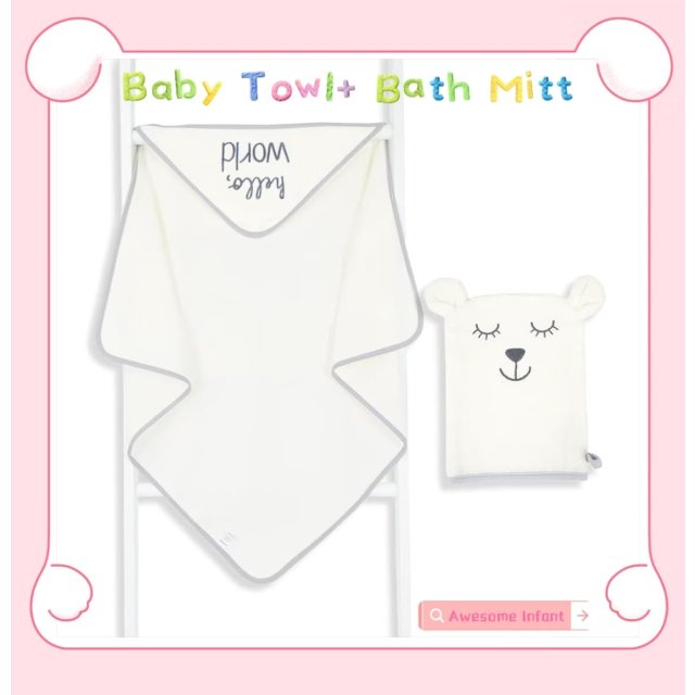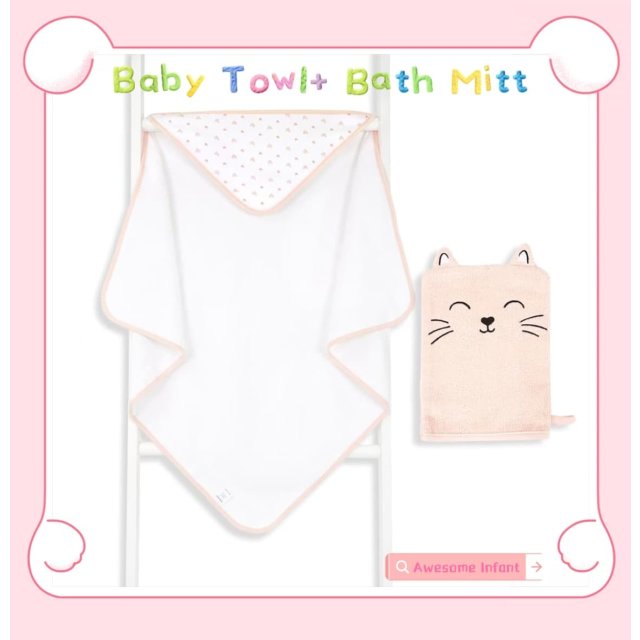 香檳貓咪嬰兒毛巾+洗澡手套