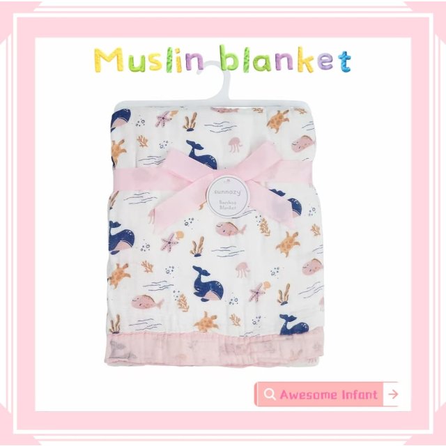 粉鲸魚竹棉4層紗巾被被