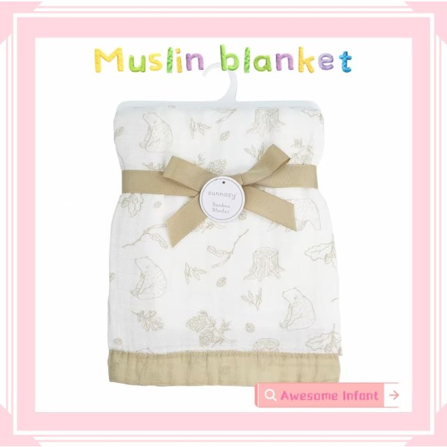 米色小熊竹棉6層提花